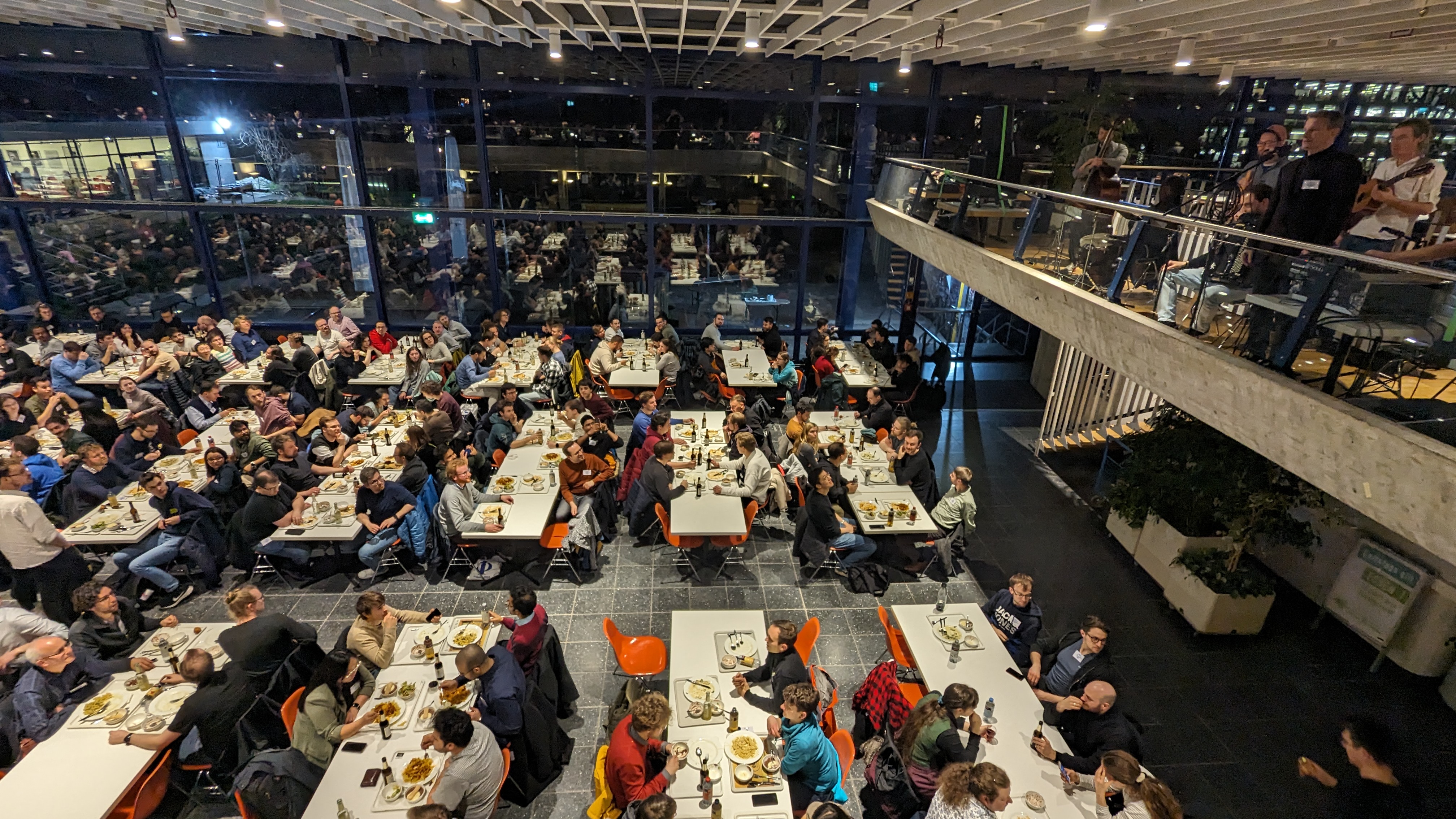 Zwischen 18:15 und 18:30 Uhr fahren Busse zwischen dem Physik- und dem Chemiegebäude ab, um Sie zum Herbrand's zu bringen (10-15 Minuten Fahrt, je nach Verkehr). Wenn Sie es vorziehen, öffentliche Verkehrsmittel zu benutzen, erhalten Sie am Informationsstand nähere Informationen.